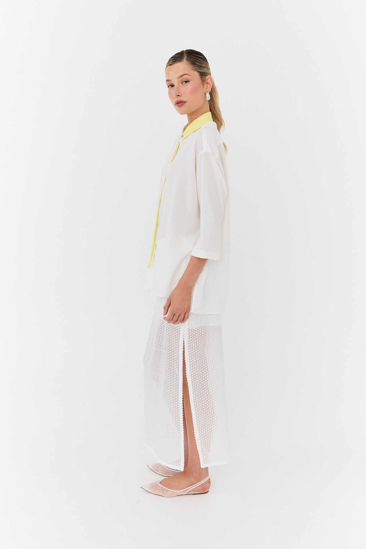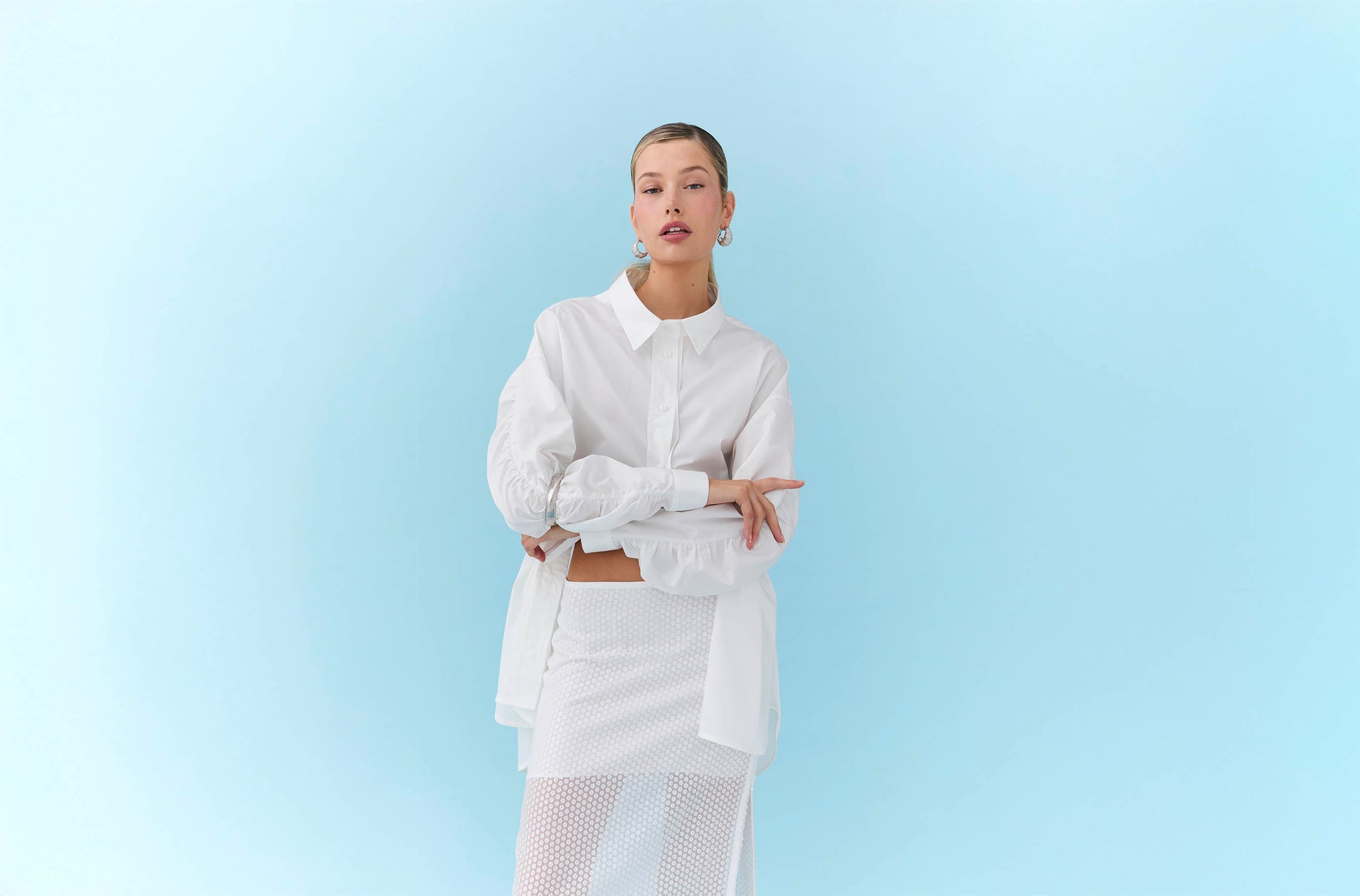 We imagined linen on warm skin, sheer fabrics that move in the breeze, and soft summer colours that echo the sand and sea, sky blue, mint, ivory, and white.